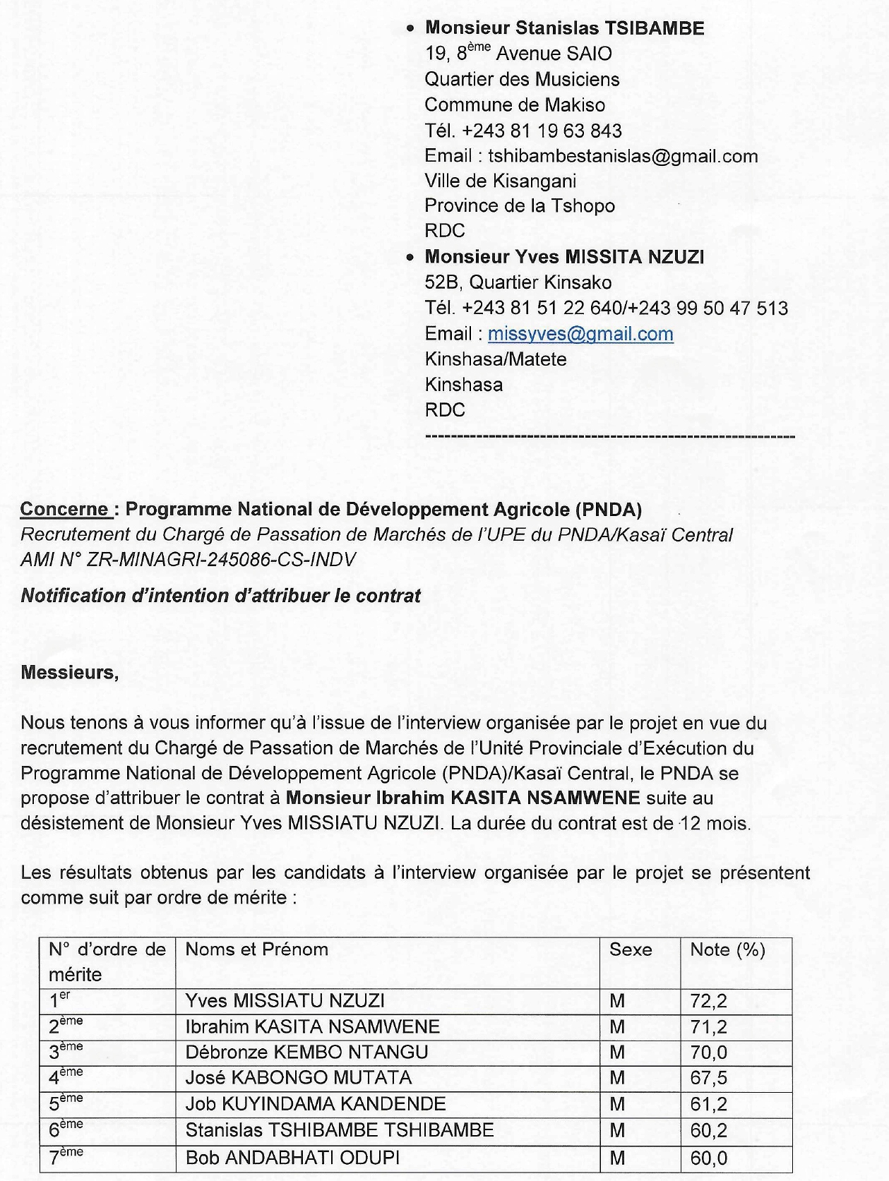 ! important ! NOTIFICATION : Chargé de Passation de Marchés
