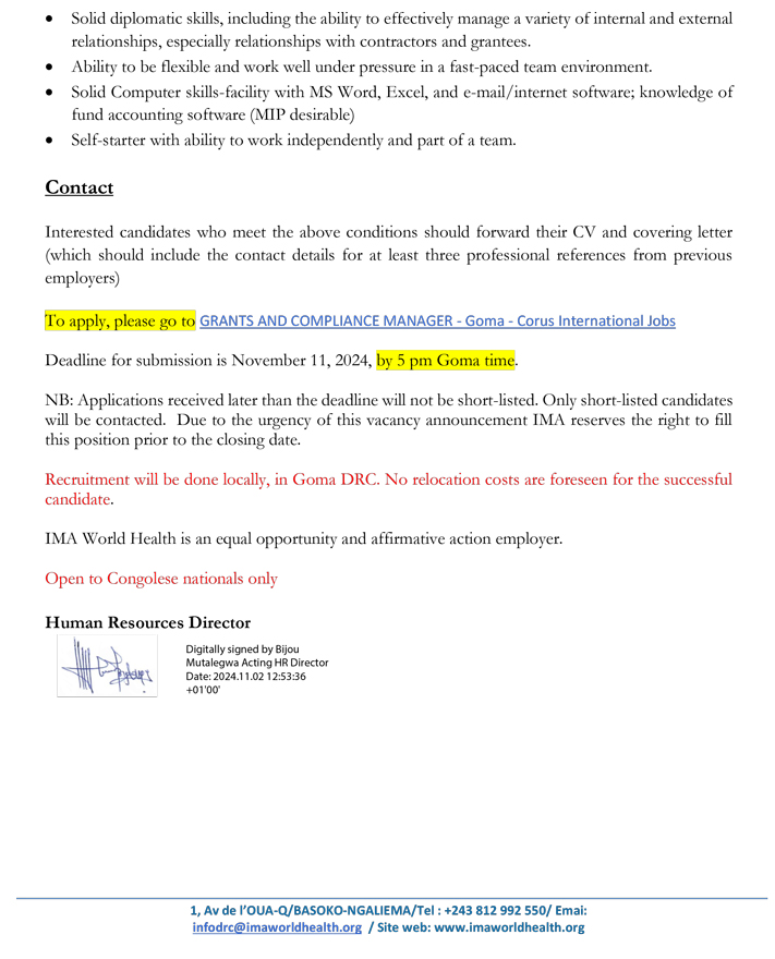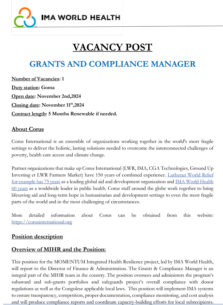 Grants and Compliance Manager