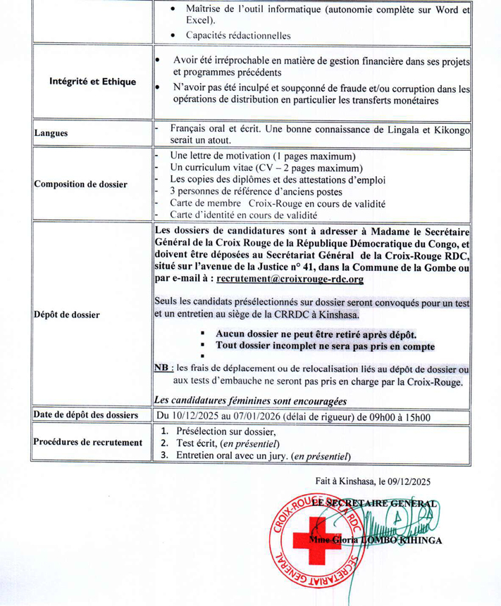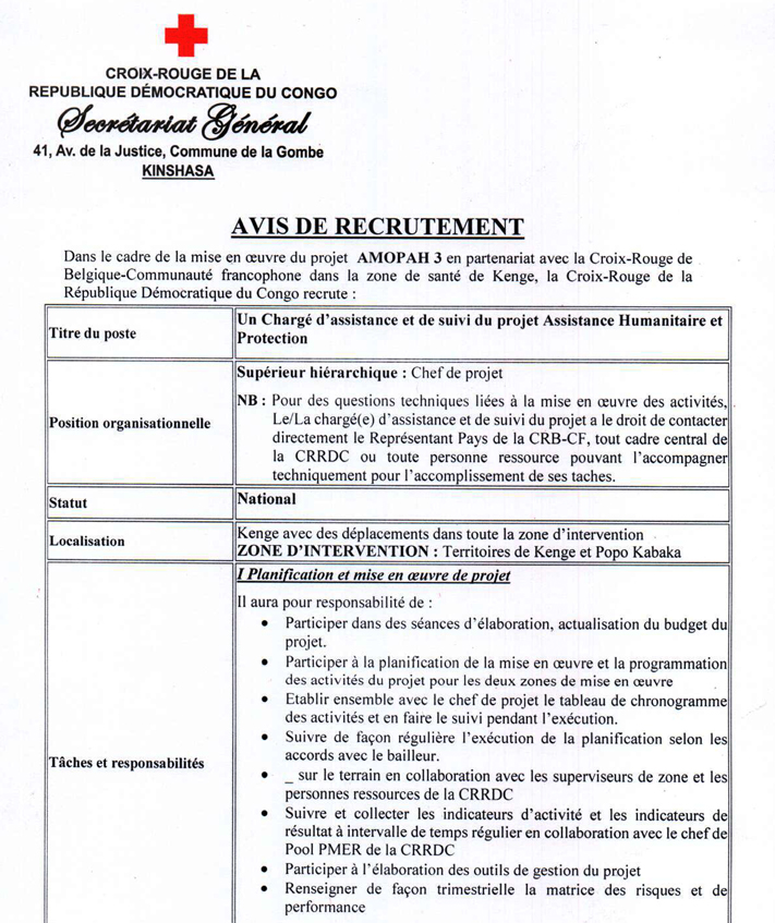 Chargé(e) d'assistance et de suivi du projet Assistance Humanitaire et Protection